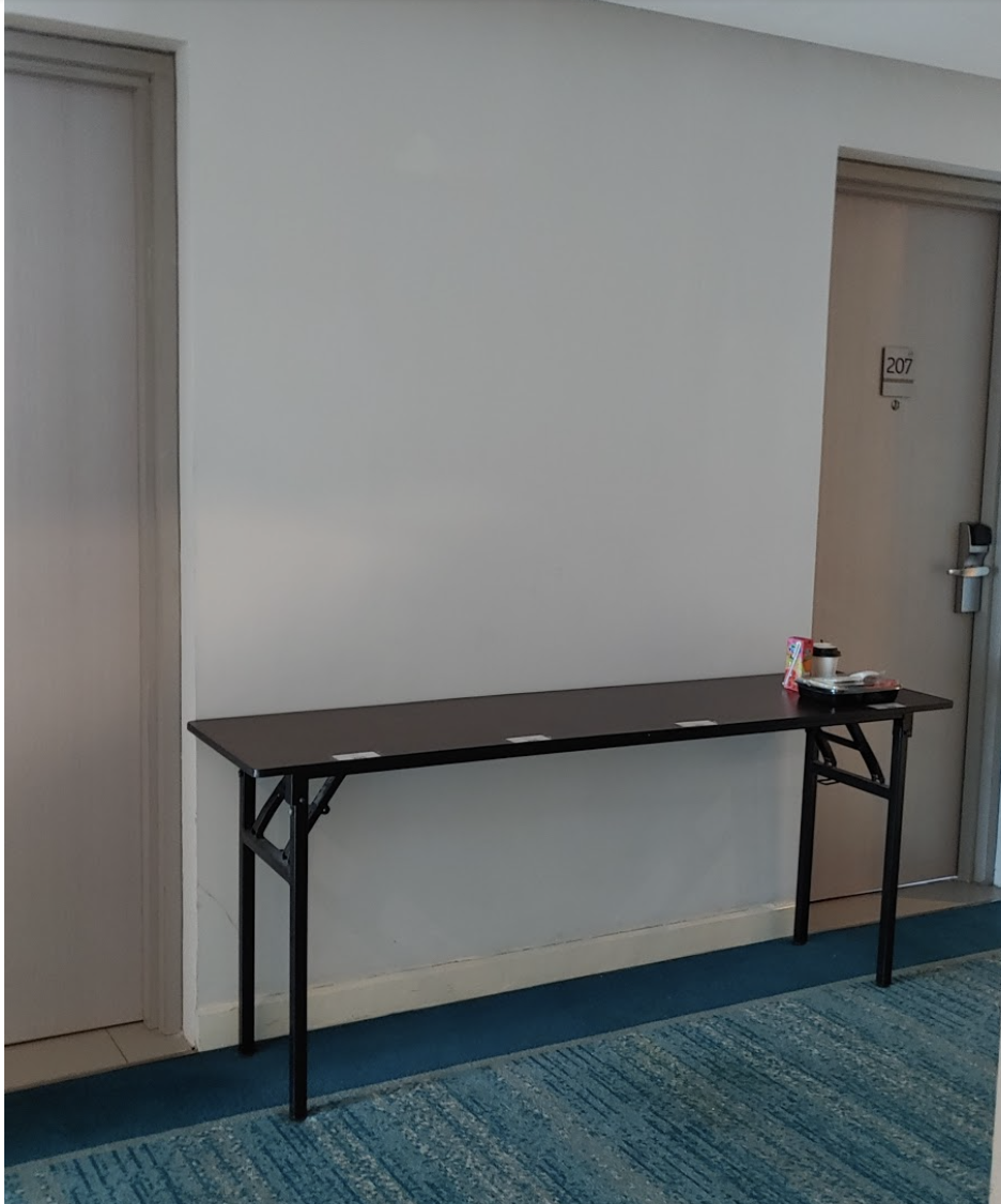 Gambar 5. Meja di depan kamar untuk staff hotel meletakkan makan pagi, siang dan malam. Satu meja difungsikan untuk empat kamar.