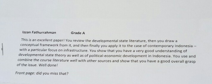 Apresiasi tidak henti sampai di situ. Dosen saya hari itu dengan muka bersungguh-sungguh tiba-tiba berujar. “Thank you for your presentation. It was really interesting. I will be here again next year, and would you like to assist me in this particular topic again? Of course, if you’re still here as well!” Lagi-lagi, saya hanya bisa tertegun. Manusia macam apa orang-orang ini?? Kok bisa-bisanya dosen saya masih mengapresiasi ketika saya mungkin telah mengecewakan beliau dengan presentasi yang amburaduldi setengah sesi kelas. Tawaran tersebut, dengan sedikit gugup, jelas saya sambut dengan jawaban “YES!”.