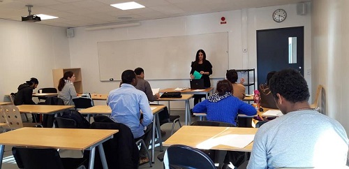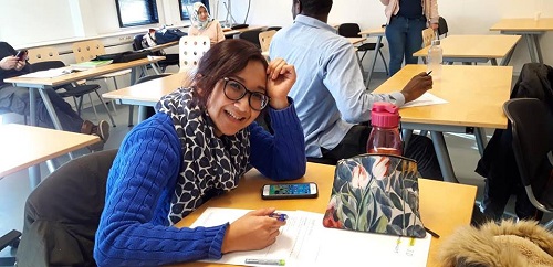 Di satu kelas, Samar Darmo memegang tumpukan kertas dan memanggil satu per satu nama peserta kursus. Setiap kali Samar membacakan apa yang tertera di kertas, peserta kursus kompak merespon dengan gumam kagum, sekedar pandangan penuh maklum, dan tak jarang tepuk tangan dan sorakan riuh. Salah satunya Alvia Zuhadmono, biasa disapa Nina, yang saat ini berada di Kurs (tingkat) D program Swedish for Immigrants (SFI). “Itu kertas-kertas ujian yang barusan kita kerjakan,” Kata Nina yang akan melalui ujian kenaikan tingkat minggu depan.