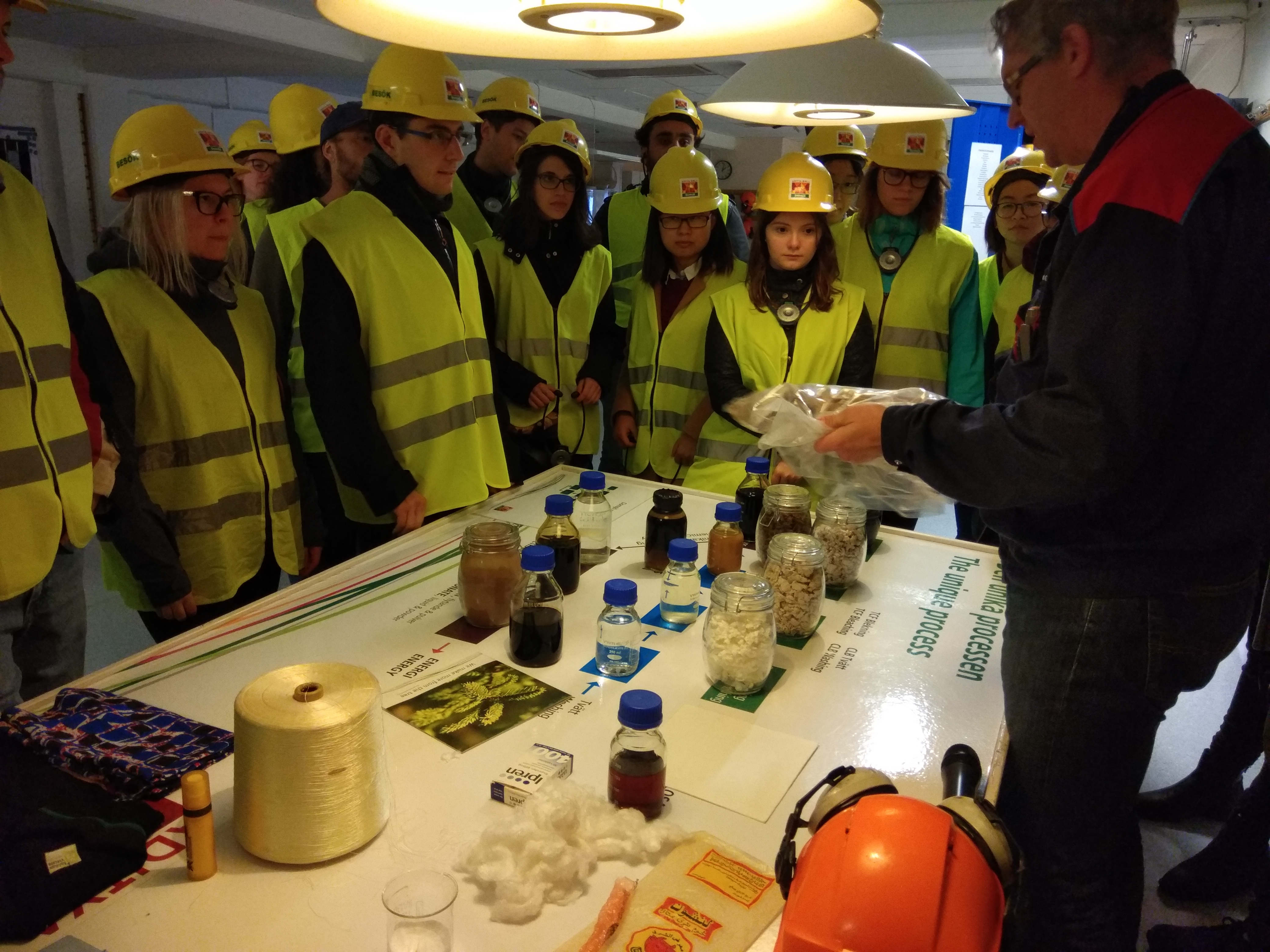 Setelah presentasi yang berlangsung kurang lebih 45 menit, kami melakukan factory tour. Sebelum masuk area pabrik, kami dibekali dengan rompi, helm serta perangkat audio sejenis headset untuk mendengar penjelasan dari pemandu. Secara umum, saya berpendapat bahwa gambaran pabrik yang saya lihat tidak jauh berbeda dengan pabrik di Indonesia, seperti tata letak atau komputerisasi mesinnya. Poin penting yang jadi catatan saya adalah proses produksi perusahaan ini yang environmentally friendly alias ramah lingkungan. Salah satu ciri yang kasat mata adalah kondisi sungai di dekat pabrik yang begitu jernih karena mereka menggunakan proses bleaching yang bebas klorin dengan siklus daur ulang.